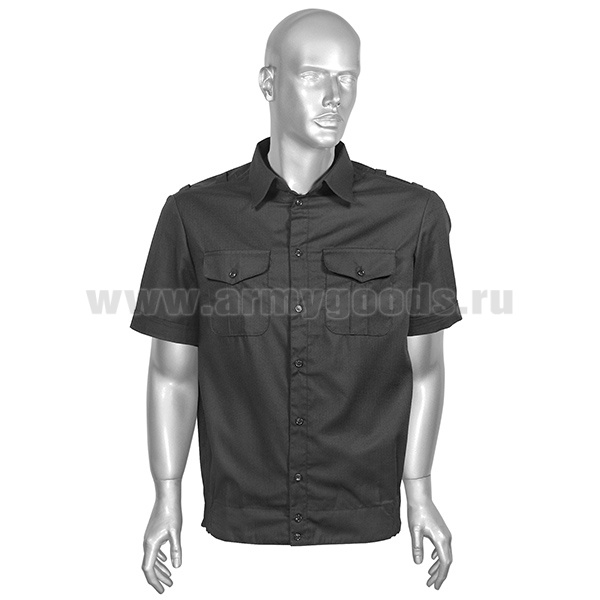 Рубашка мужская (кор.рук.) черная ткань Rip-Stop (к офисному костюму)