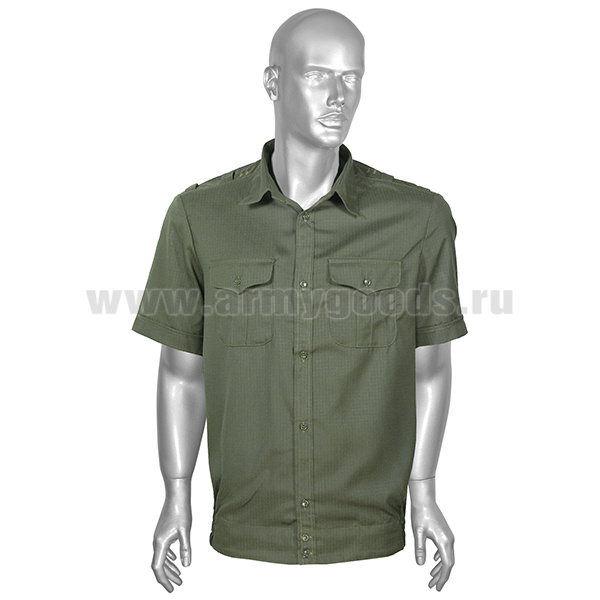 Рубашка мужская (кор.рук.) оливковая ткань Rip-Stop (к офисному костюму)