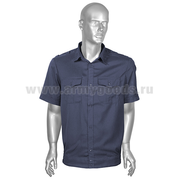 Рубашка мужская (кор.рук.) синяя ткань Rip-Stop (к офисному костюму) р-ры с 47