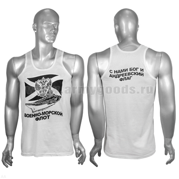 Майка белая с надп. краской ВМФ (С нами Бог и Андреевский флаг)
