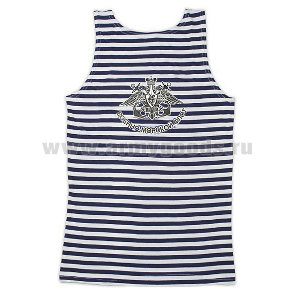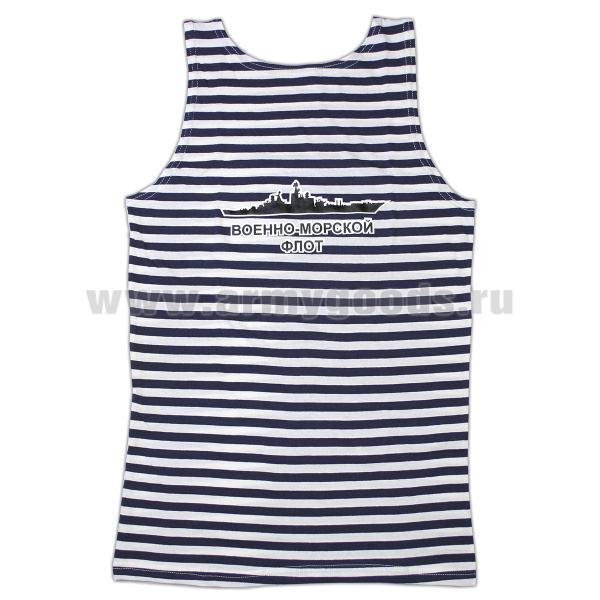 Майка-тельняшка кулирка синяя ВМФ (корабль и надпись краской)