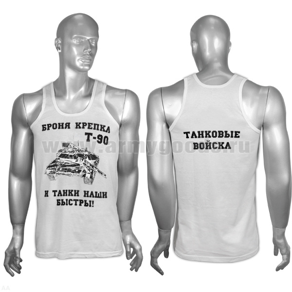 Майка белая с надп. краской Танковые войска (броня крепка и танки наши быстры ! Т-90)