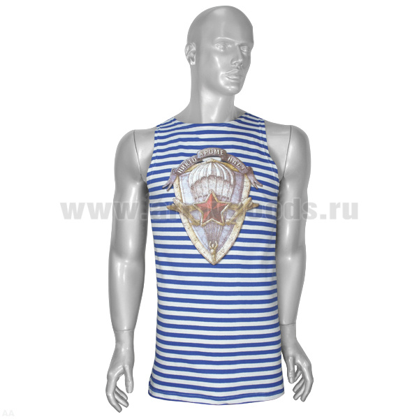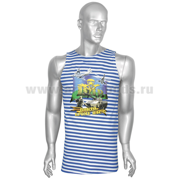 Майка-тельняшка кулирка голубая Никто, кроме нас (эмблема ВДВ) рисунок и надпись краской