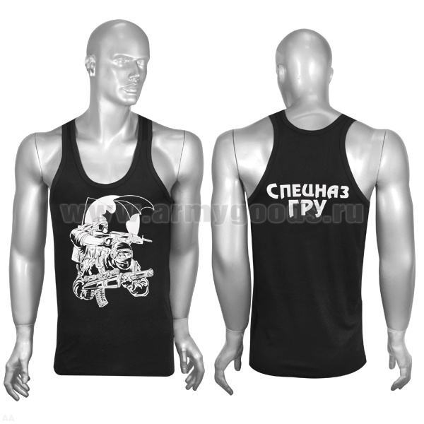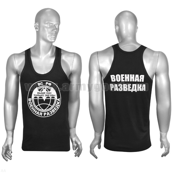 Майка черная с надп. краской Военная разведка (Выше нас только звезды)