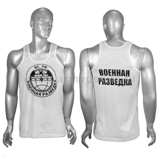 Майка белая с надп. краской Военная разведка (Выше нас только звезды)