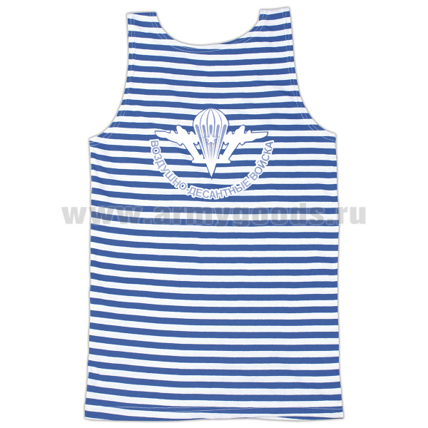 Майка-тельняшка кулирка голубая ВДВ (эмблема и надпись краской)