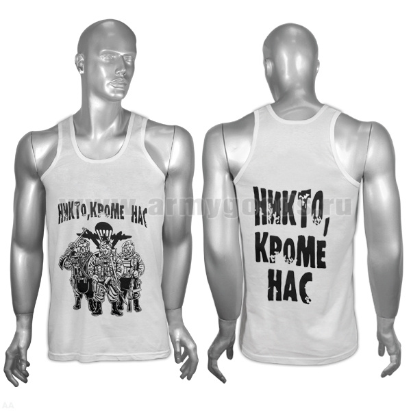 Майка белая с надп. краской Никто, кроме нас (три медведя)