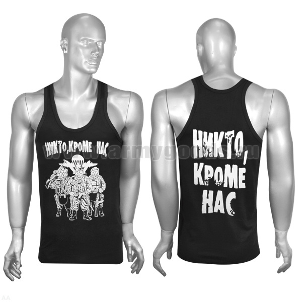 Майка черная с надп. краской Никто, кроме нас (три медведя)