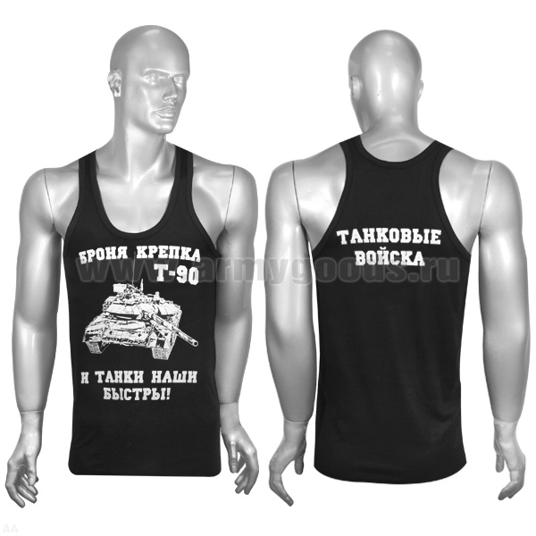 Майка черная с надп. краской Танковые войска (броня крепка и танки наши быстры ! Т-90)