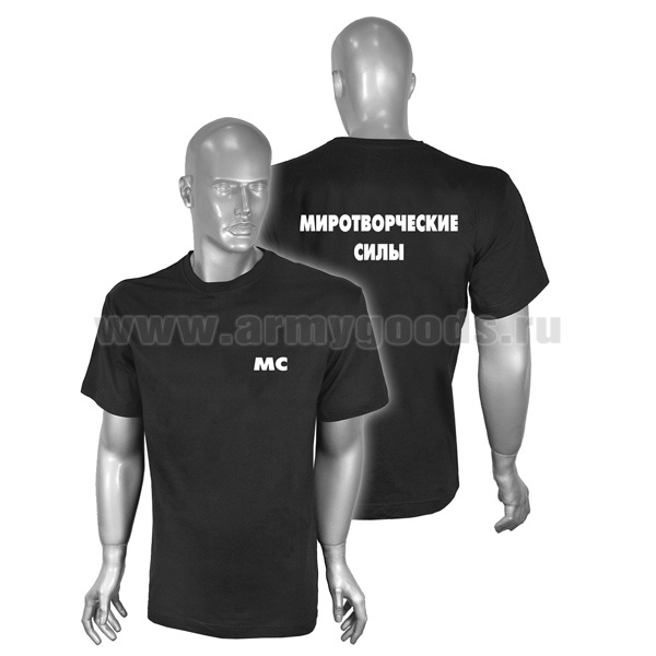 Футболка с надп. белой краской черн. ВДВ (малая эмблема на груди, аббревиатура на спине)