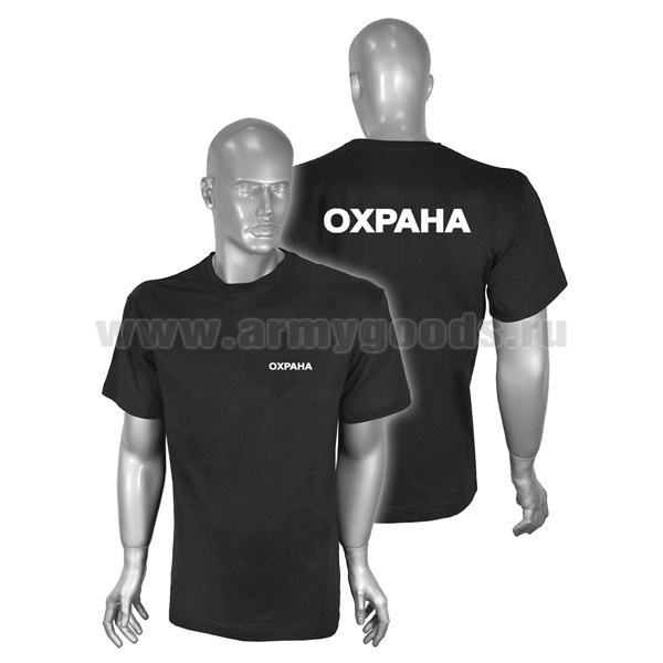 Футболка с надп. белой краской черн. Охрана р-ры с 62