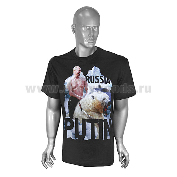 Футболка с рис краской Russia Putin (Путин на медведе) черная (р-ры с 46 по 60)
