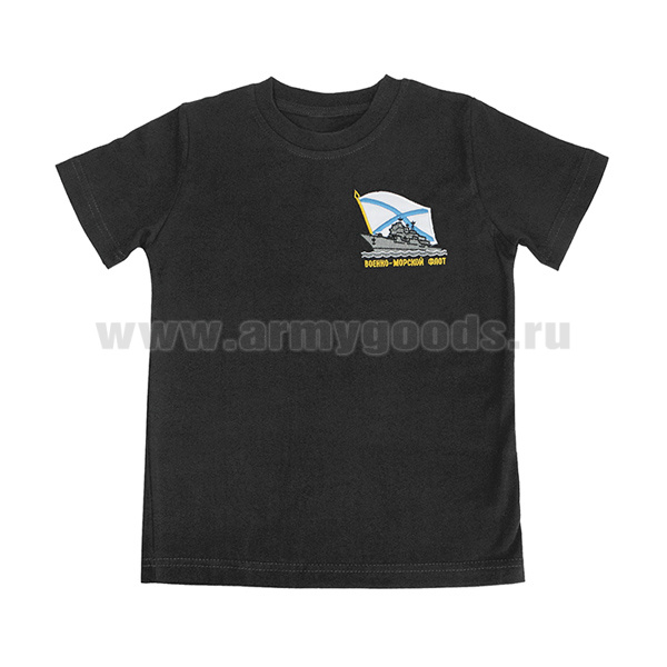 -Футболка с вышивкой на груди ВМФ (корабль) черная детская