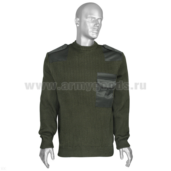 Свитер п/ш с накладками оливк. (вырез под горло круглый) р-ры с 62