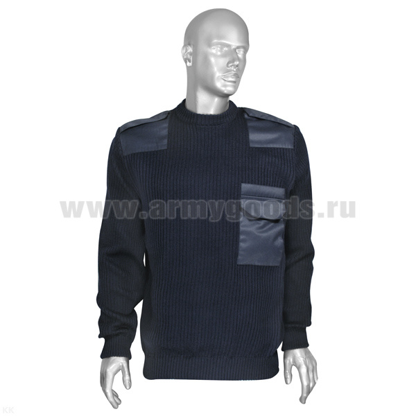 Свитер п/ш с накладками синий (вырез под горло круглый) р-ры с 40 по 60