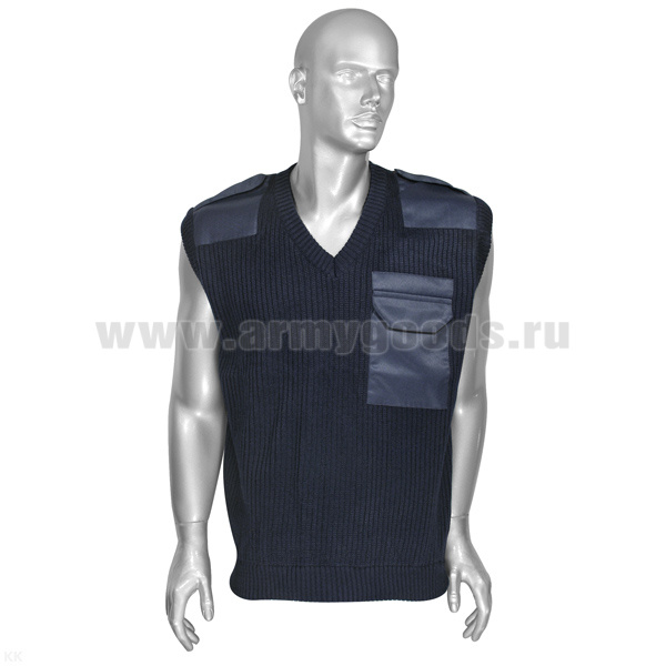 Жилетка п/ш вязаная с накладками синяя