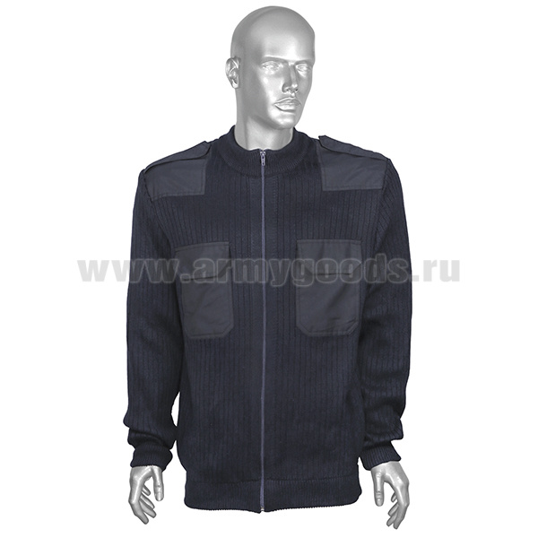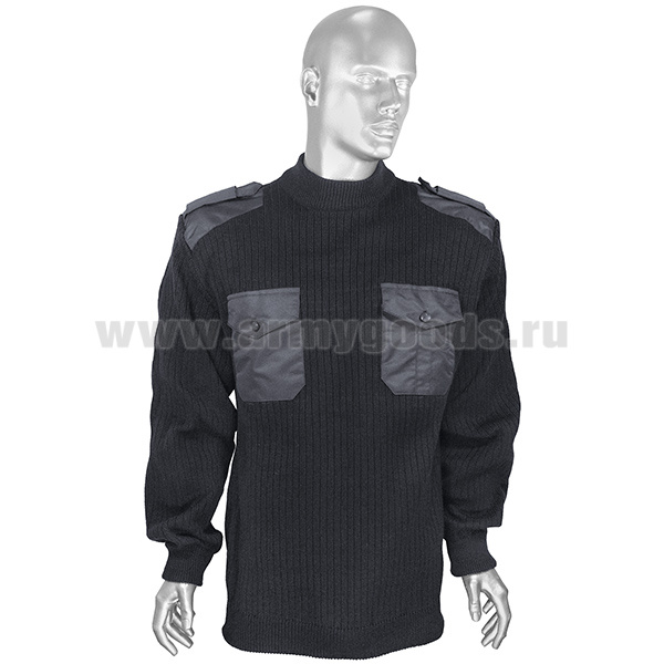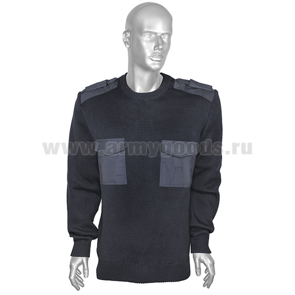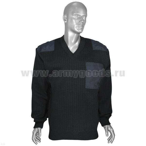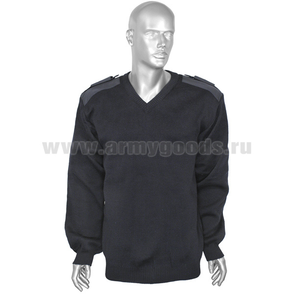 Свитер п/ш с накладками ФСО-ФСБ иссиня-черный (вырез под горло V-образный) со шлевками под уставные погоны