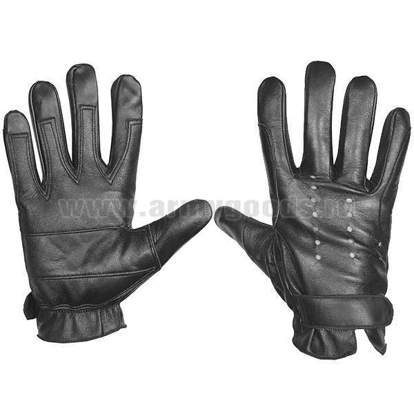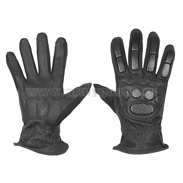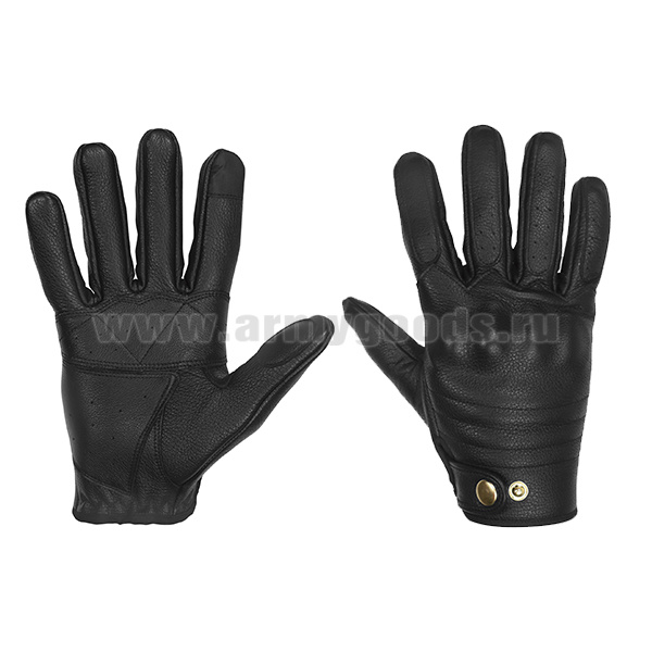 Перчатки кожаные с защитными накладками черные (застежка на кнопке)