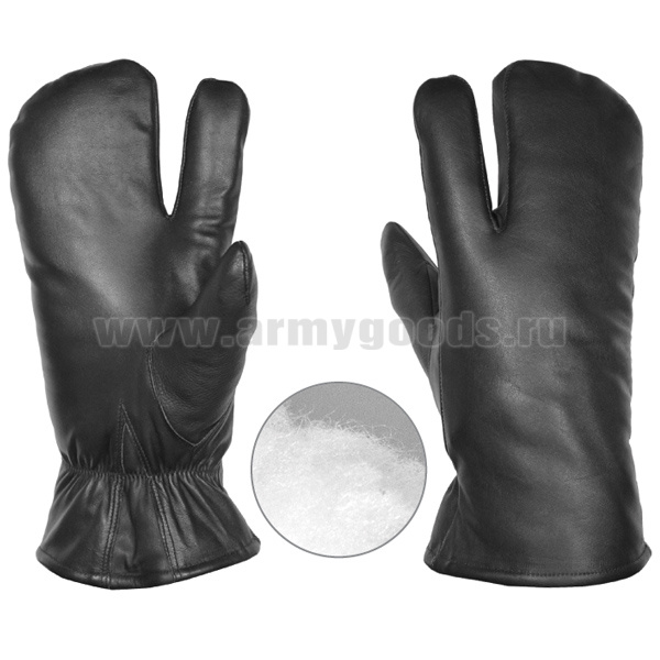 Рукавицы кожаные стрелковые (двупалые) иск. мех ИВ 240
