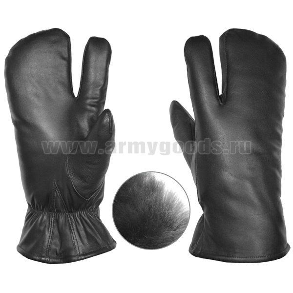 Рукавицы кожаные стрелковые (двупалые) нат. мех НВ 240