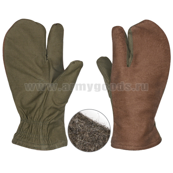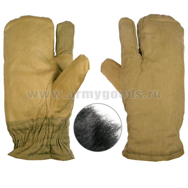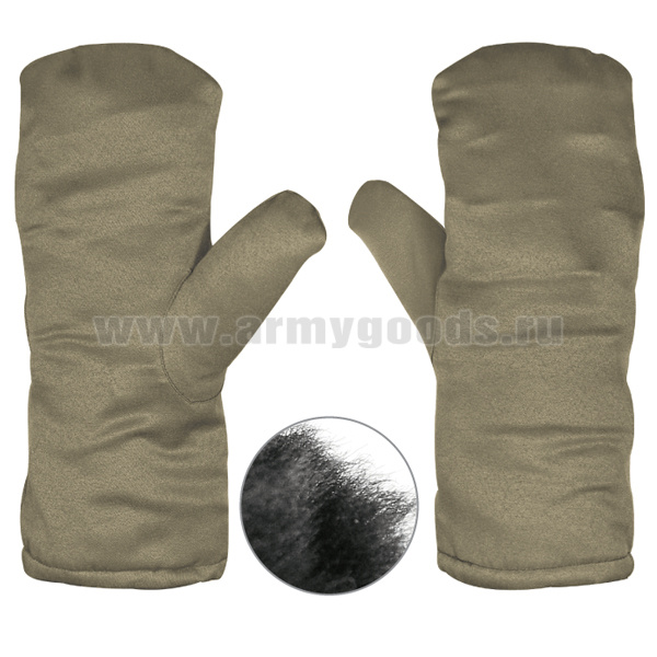 Рукавицы тканевые стрелковые (двупалые) оливковые (нат. мех)