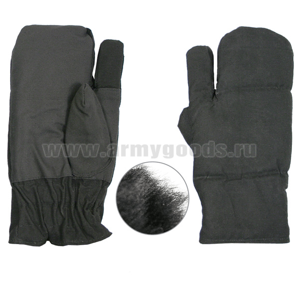 Рукавицы тканевые стрелковые (двупалые) черные (нат. мех)
