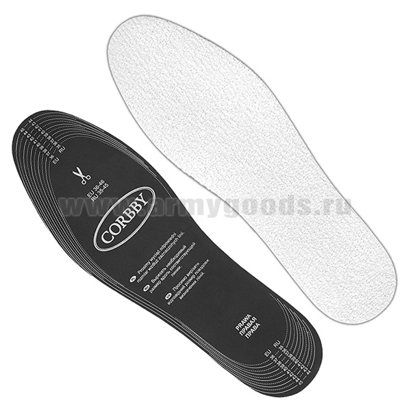 Стельки Corbby безразм. демисезонные с активир. углем (верхний слой - х/б махровая ткань)