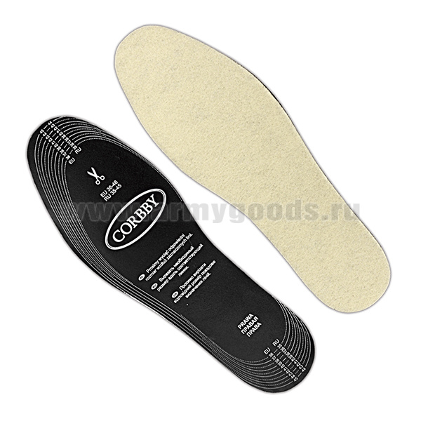 Стельки Corbby безразм. зимние универсальные (нат. овечья шерсть + латексная пена)
