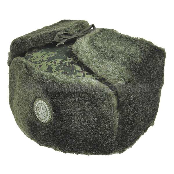 Шапка иск. мех оливков., верх - ткань "русск. цифра" (модель "классическая ушанка)