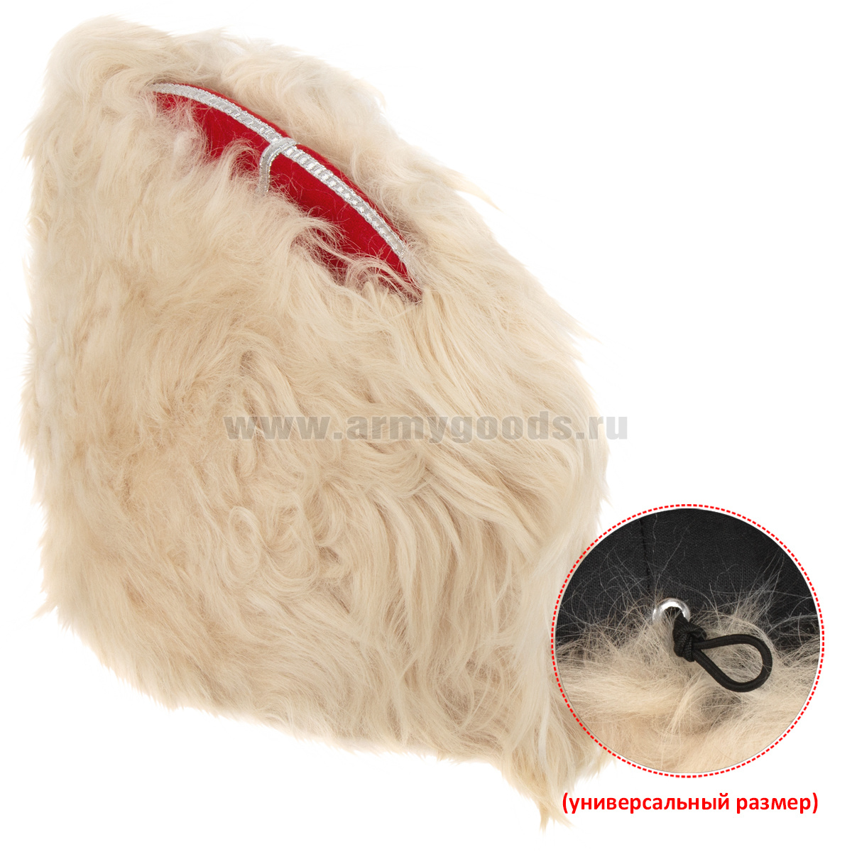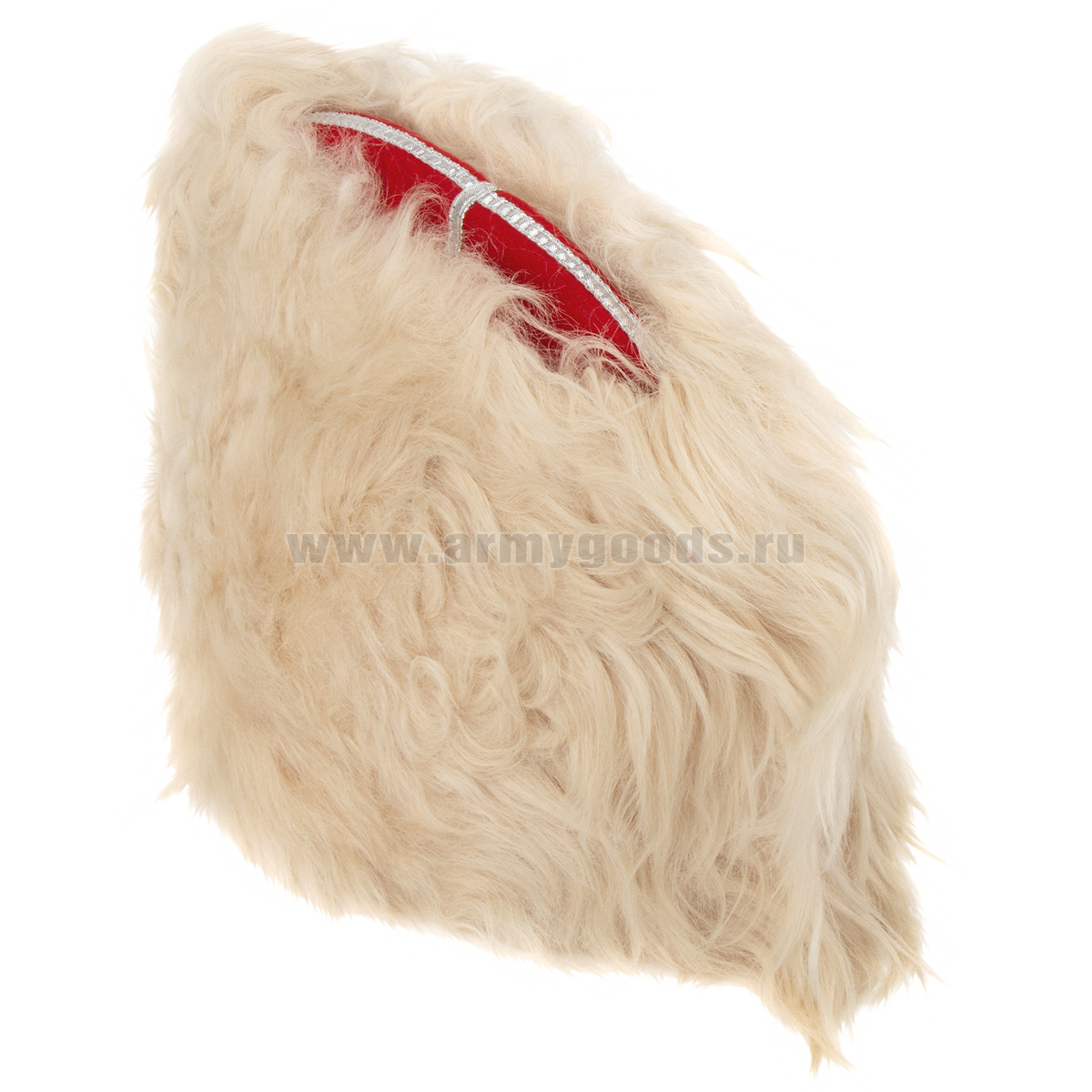 • Папаха казачья нат.мех белая (верх - алое сукно) универсальный размер