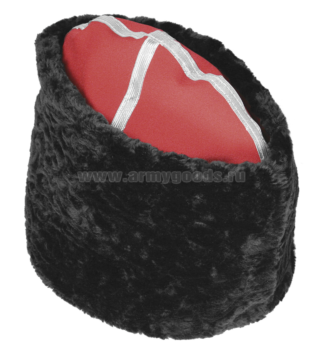 -Папаха казачья иск. мех черная (верх - алое сукно) универсальный размер