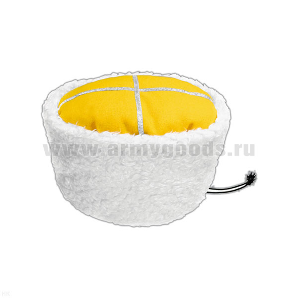 Папаха казачья иск. мех белая (верх - желтое сукно) универсальный размер