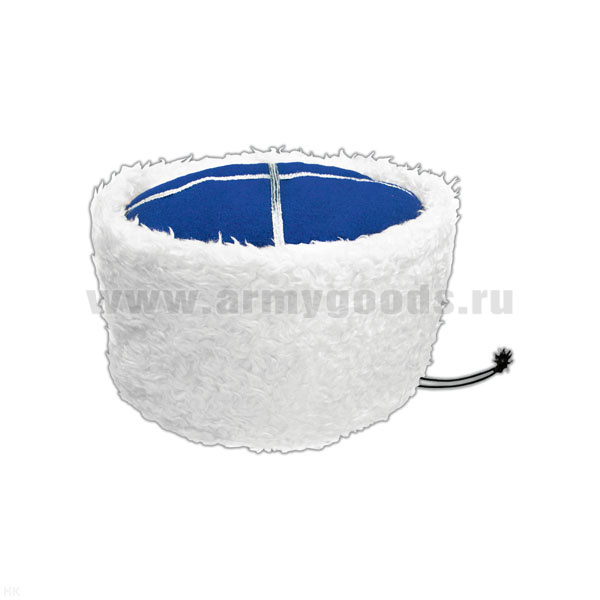 Папаха казачья иск. мех белая (верх - васильковое сукно) универсальный размер