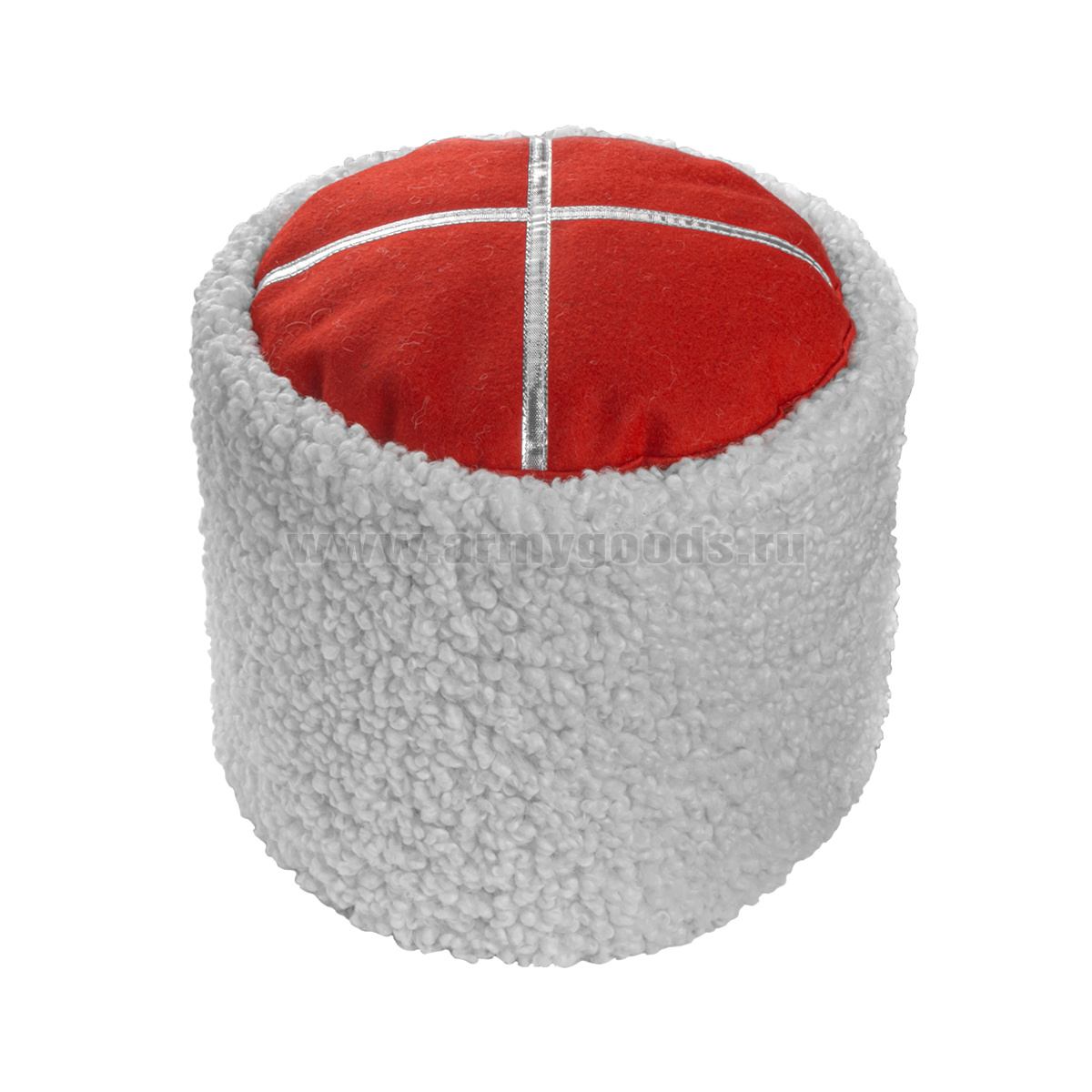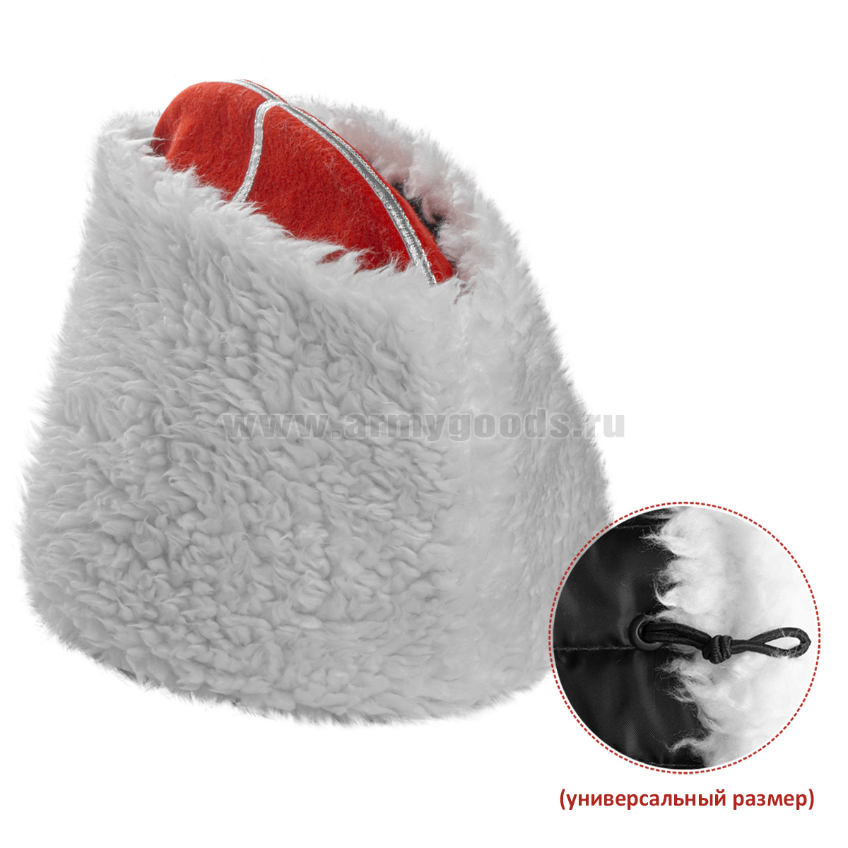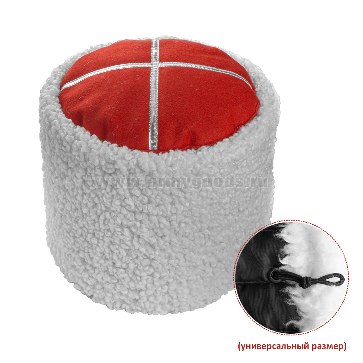 Папаха казачья иск. мех белая (верх - алое сукно) универсальный размер
