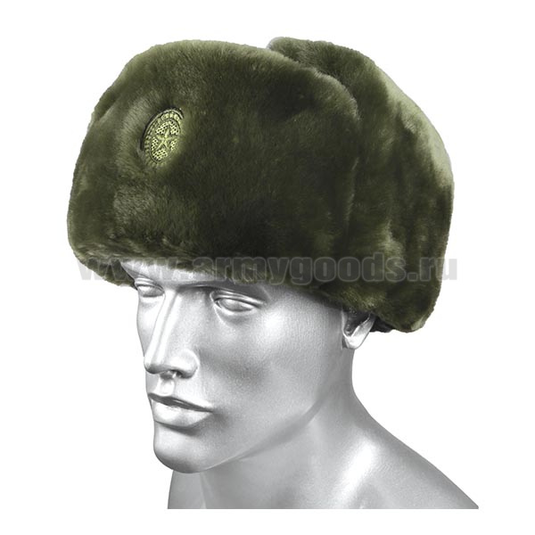 • Шапка нат. мех оливков., верх - ткань Русск. цифра модель "классическая ушанка" 61