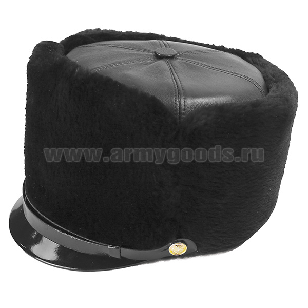 Шапка нат. мех бобра черн. цвета с козырьком, верх - кожа (ВМФ РФ)