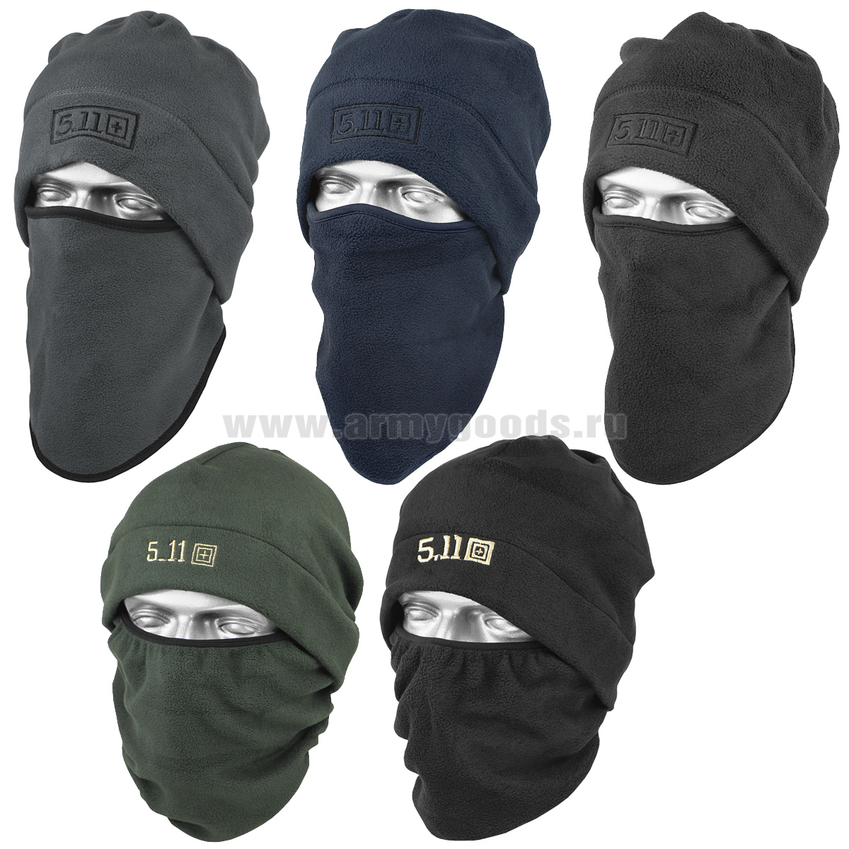 Шапка-маска (трансформер) флисовая мод. 5.11 (оливк., сер., син., черн.)