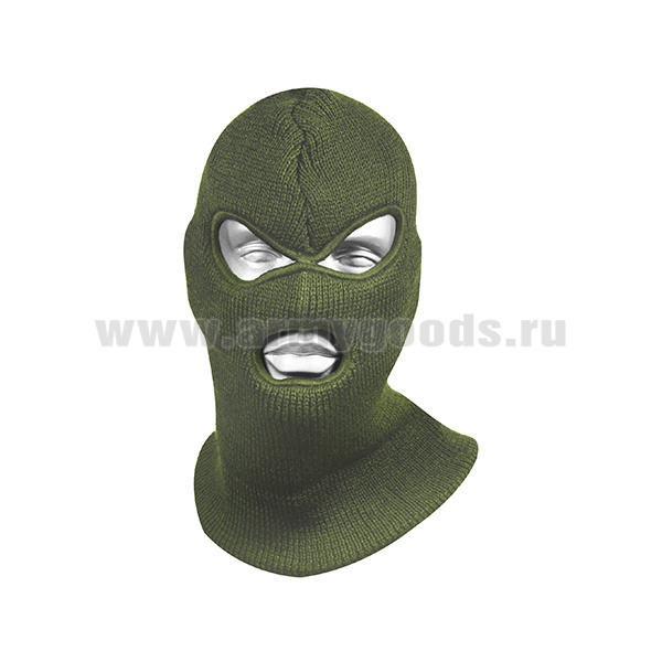 Маска вязаная двойная 100% акрил (отверстия для глаз и рта) оливковая М-9