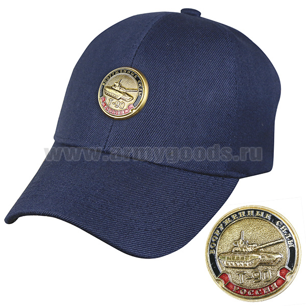 Бейсболка простая синяя с мет. накладкой Вооруженные силы Т-90