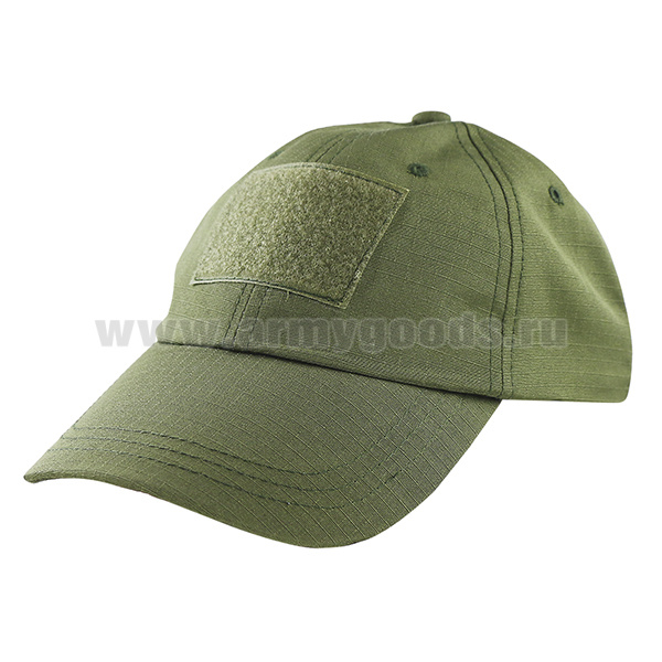 Бейсболка оливковая (ткань "rip-stop") с нашитыми липучками (50х70 и 20х70 мм)
