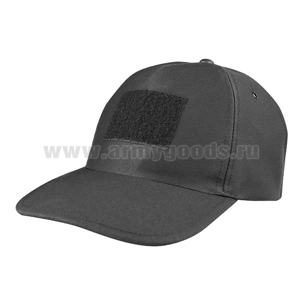 Бейсболка черная (ткань "rip-stop") с нашитыми липучками (50х70 и 20х70 мм)