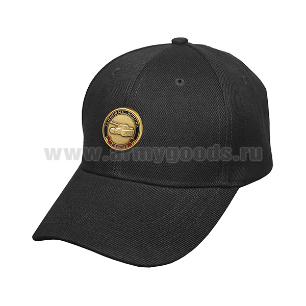 Бейсболка простая черная с мет. накладкой Танковые войска