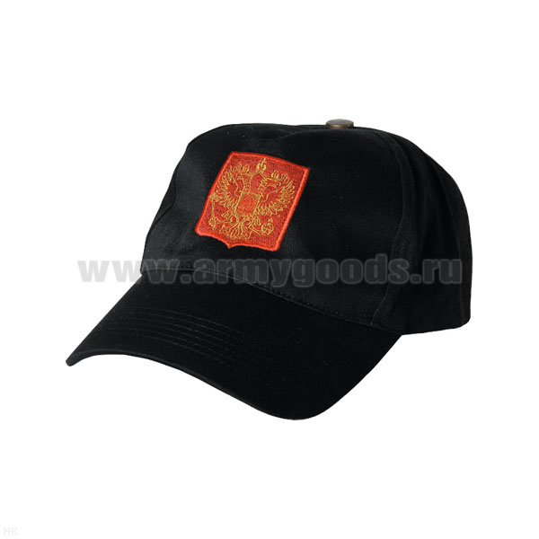 Бейсболка черная вышитая с орлом РФ на красном фоне