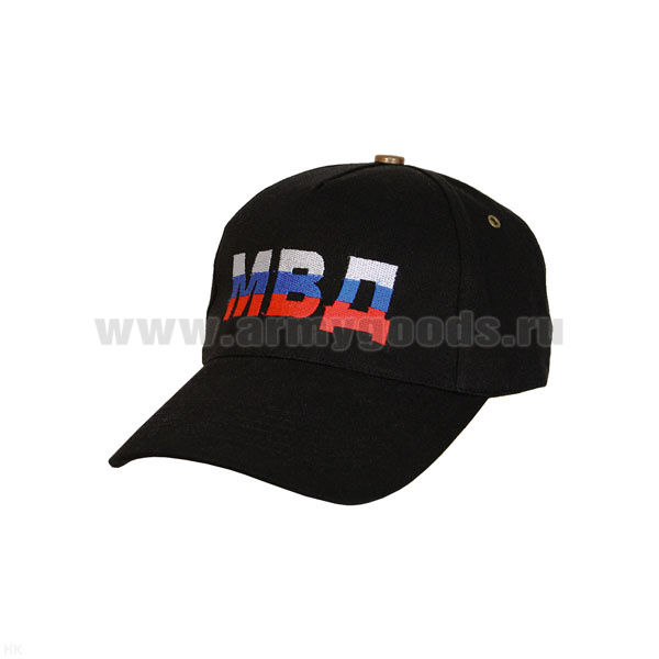 Бейсболка черная вышитая МВД (буквы в цветах триколора РФ)