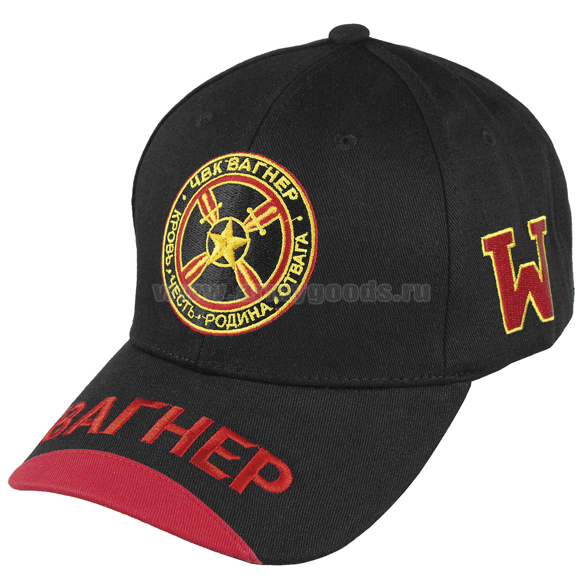 Бейсболка вышитая Вагнер ЧВК Вагенр Кровь Честь Родина, Отвага (черная)