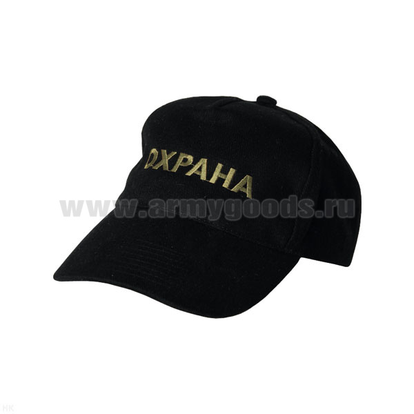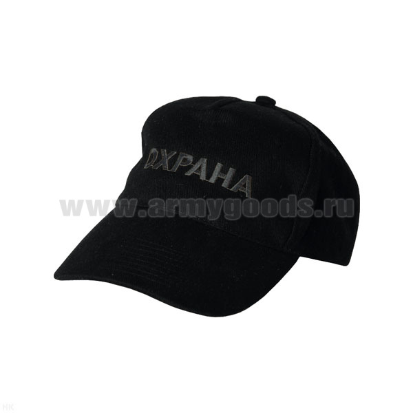 Бейсболка черная вышитая Охрана (черная нить)