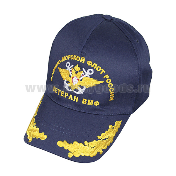 Бейсболка темно-синяя вышитая Военно-морской флот России Ветеран ВМФ (орел ВМФ)