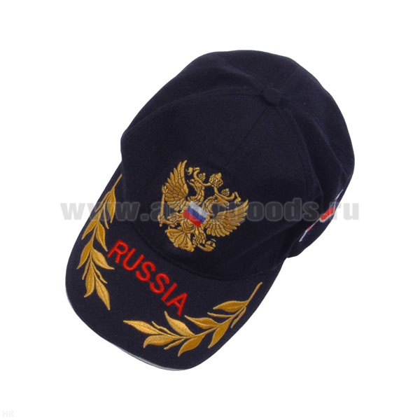 Бейсболка супервышивка Russia с орлом темно-синяя