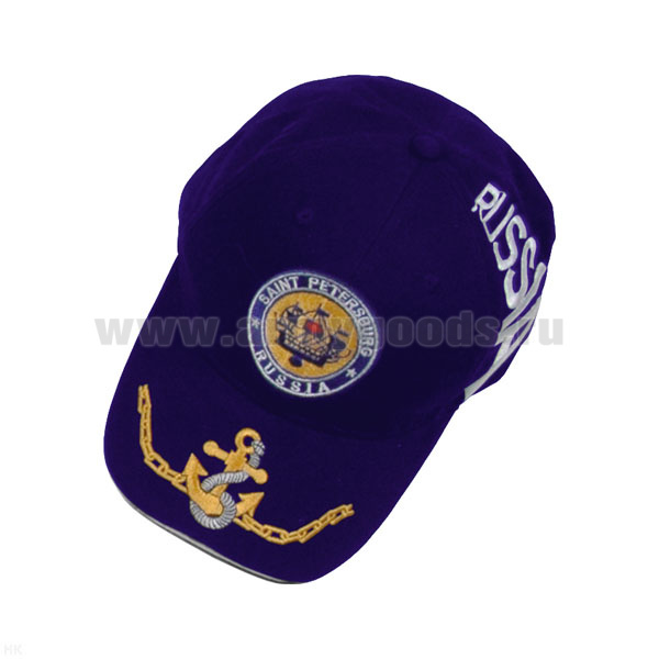 Бейсболка супервышивка Saint Petersburg (на козырьке якорь) темно-синяя
