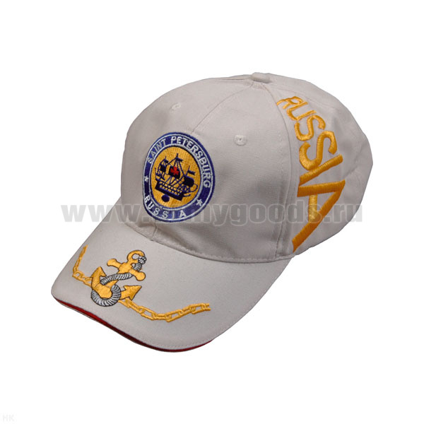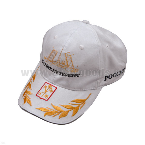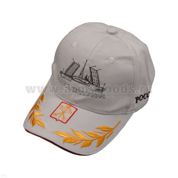 Бейсболка супервышивка Санкт-Петербург (на козырьке герб города) белая